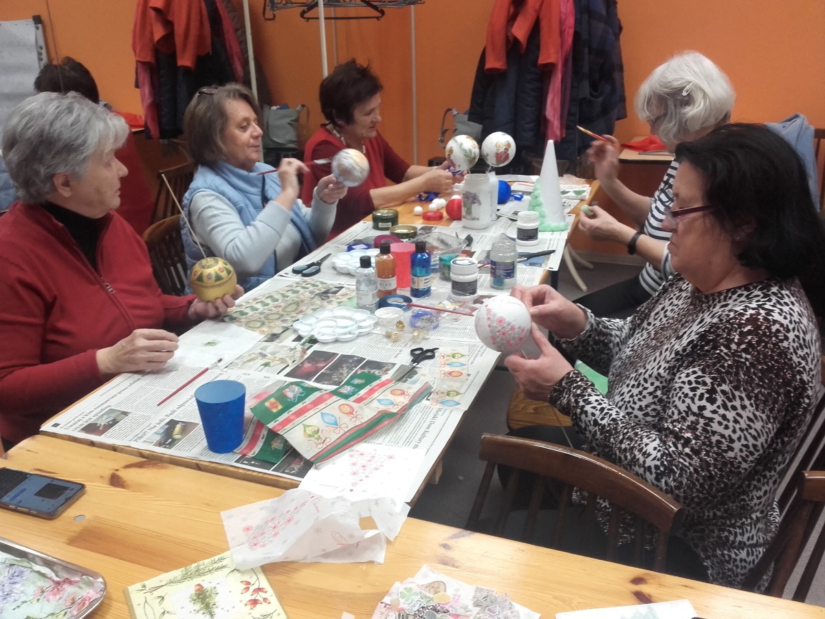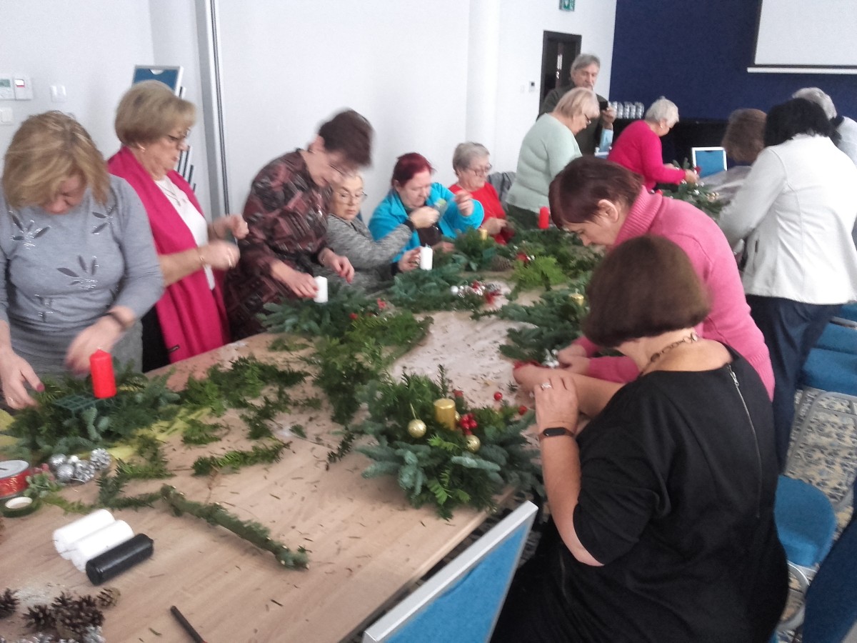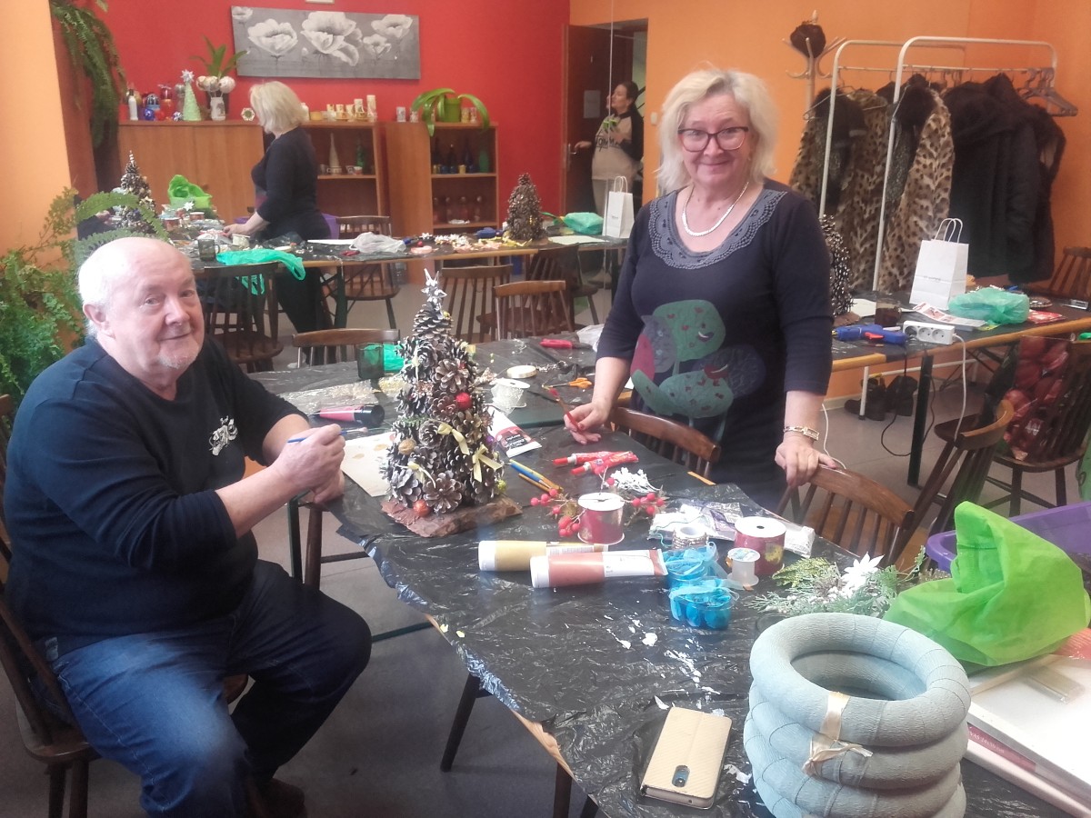 o kondycję umysłu oraz sprawność ruchową, podnosimy swoje umiejętności kulinarne oraz artystyczno- manualne tworząc pracę na warsztatach decoupage oraz zajęciach plastycznych , seniorzy pilnie uczestniczą w zajęciach z języka angielskiego regularnie odbywają się spotkania klubów zainteresowań, kawiarenki jak również wykłady oraz prelekcje.Nasi zdolni Artyści Pani Jadzia oraz Pan Witek intensywnie pracują nad wykonywaniem świątecznych dekoracji spod ich rąk wychodzą same arcydzieła. ;)
