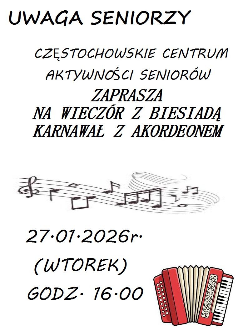 WIECZÓR Z BIESIADĄ KARNAWAŁ Z AKORDEONEM -SERDECZNIE ZAPRASZAMY SENIORÓW
